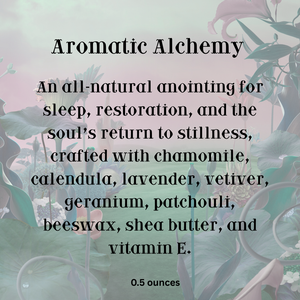 In the quiet hush between dusk and moonrise, a salve was born from the earth’s gentlest healers. This blend weaves together ancient herbs known for their soothing touch - chamomile, calendula, and lavender, each harvested to soften the edge of day. Infused with the grounding energies of vetiver and patchouli, and brightened by the floral breath of geranium, this balm carries the hush of forest dreams and the warmth of hearth light. Smoothed over the skin, it calls the spirit inward, quieting the mind, settling the breath, and steeping the senses in peace. An anointing for sleep, for restoration, and for the soul's gentle return to stillness.